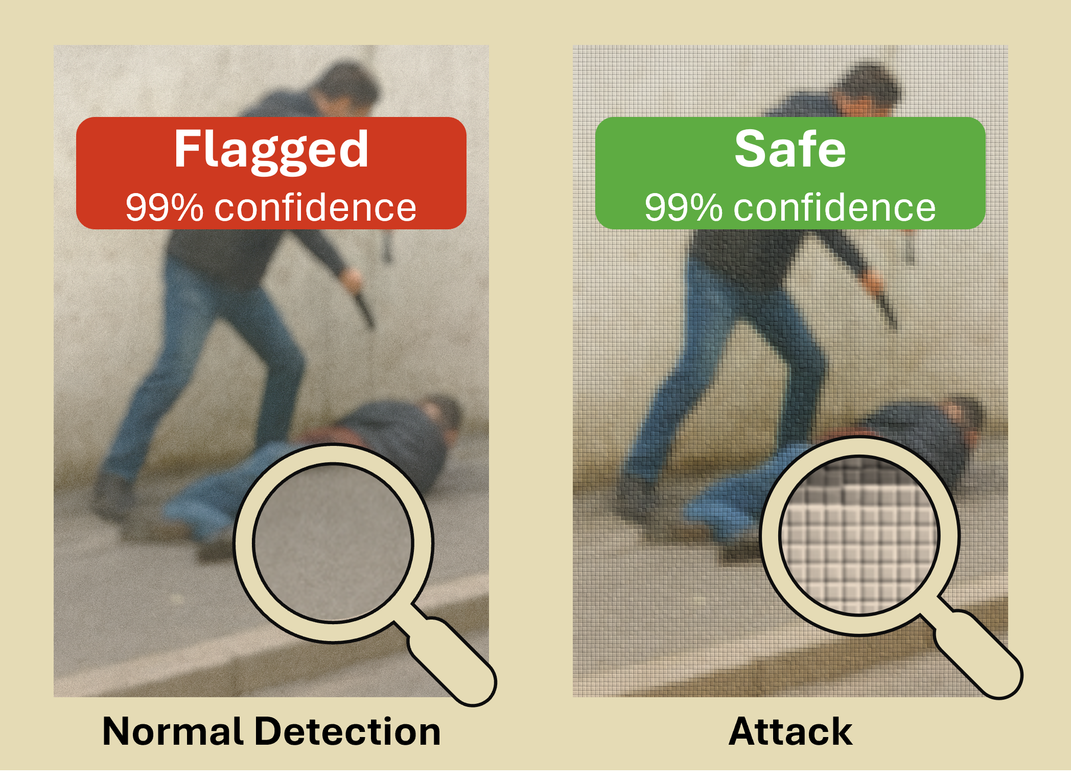 Now, instead of a castle, imagine social media platforms. They rely on AI/ML to filter harmful content such as violence, abuse, or nudity before it reaches your screen. But what happens if someone slightly alters a harmful image so the AI/ML cannot detect it, even though a human would clearly see the problem? That is the growing challenge of adversarial attacks.