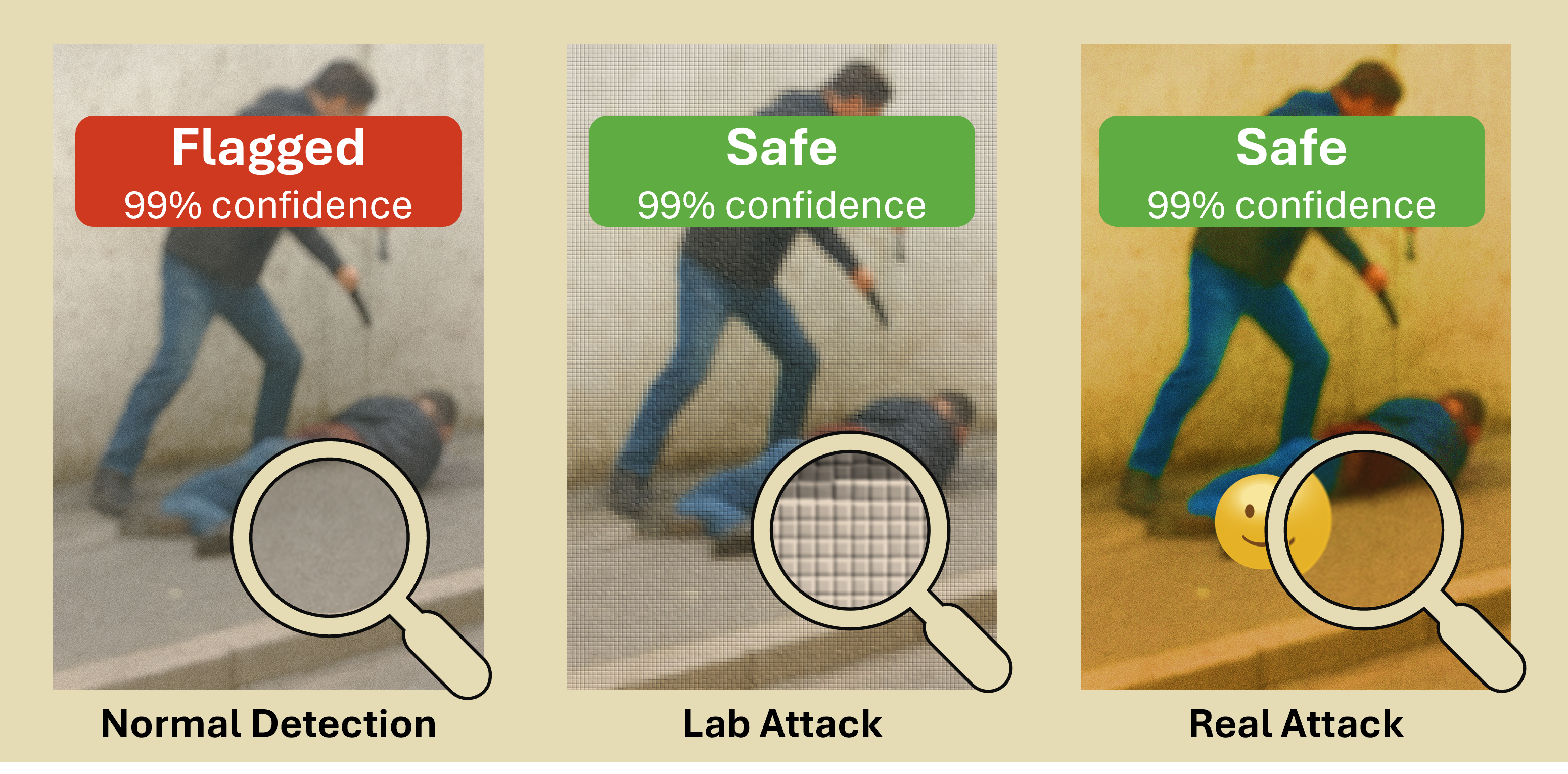 Researchers and engineers spend hours at their computers, crafting mathematically precise tweaks, small pixel changes in an image or character swaps in text. Easy to create and measure, yes, but far from the messy and creative tactics real attackers use.
